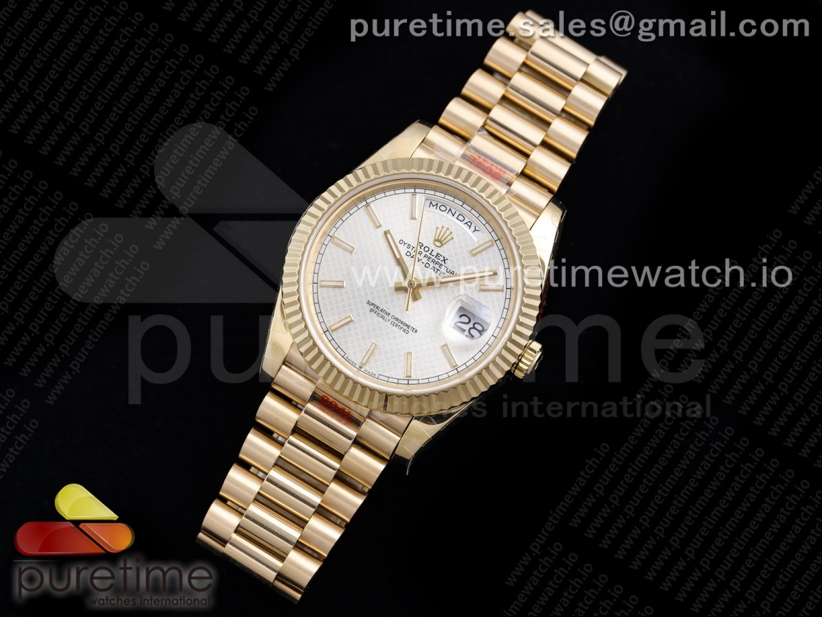 GMF 롤렉스 데이데이트40 옐로우골드 실버텍스쳐다이얼 스틸브레이슬릿 Day Date 40 YG 904L Steel GMF 1:1 Best Edition Silver Textured Dial on YG Bracelet A2836