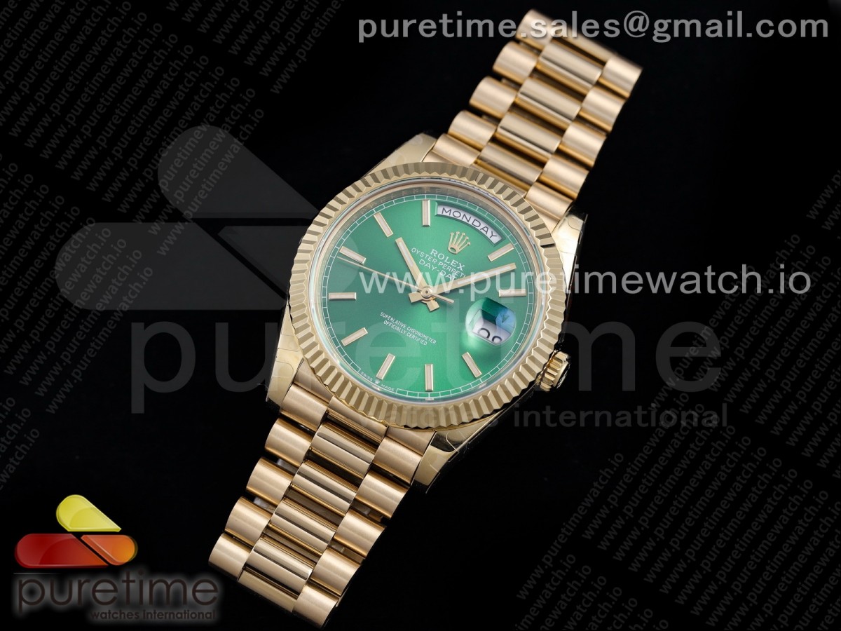 GMF 롤렉스 데이데이트40 옐로우골드 그린다이얼 스틸브레이슬릿 Day Date 40 YG 904L Steel GMF 1:1 Best Edition Green Dial on YG Bracelet A2836