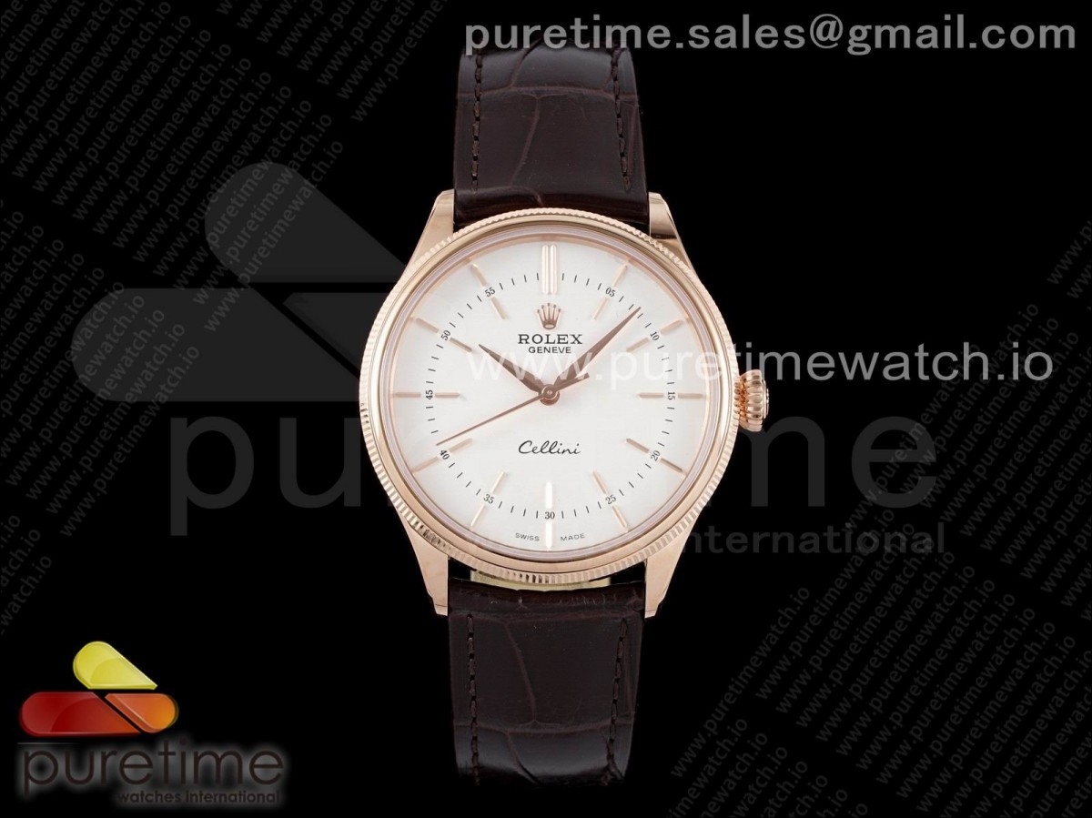KZF 롤렉스 셀리니 로즈골드 화이트다이얼 브라운가죽스트랩 Cellini RG KZF 1:1 Best Edition White Dial Stick Markers on Brown Leather Strap SA3132
