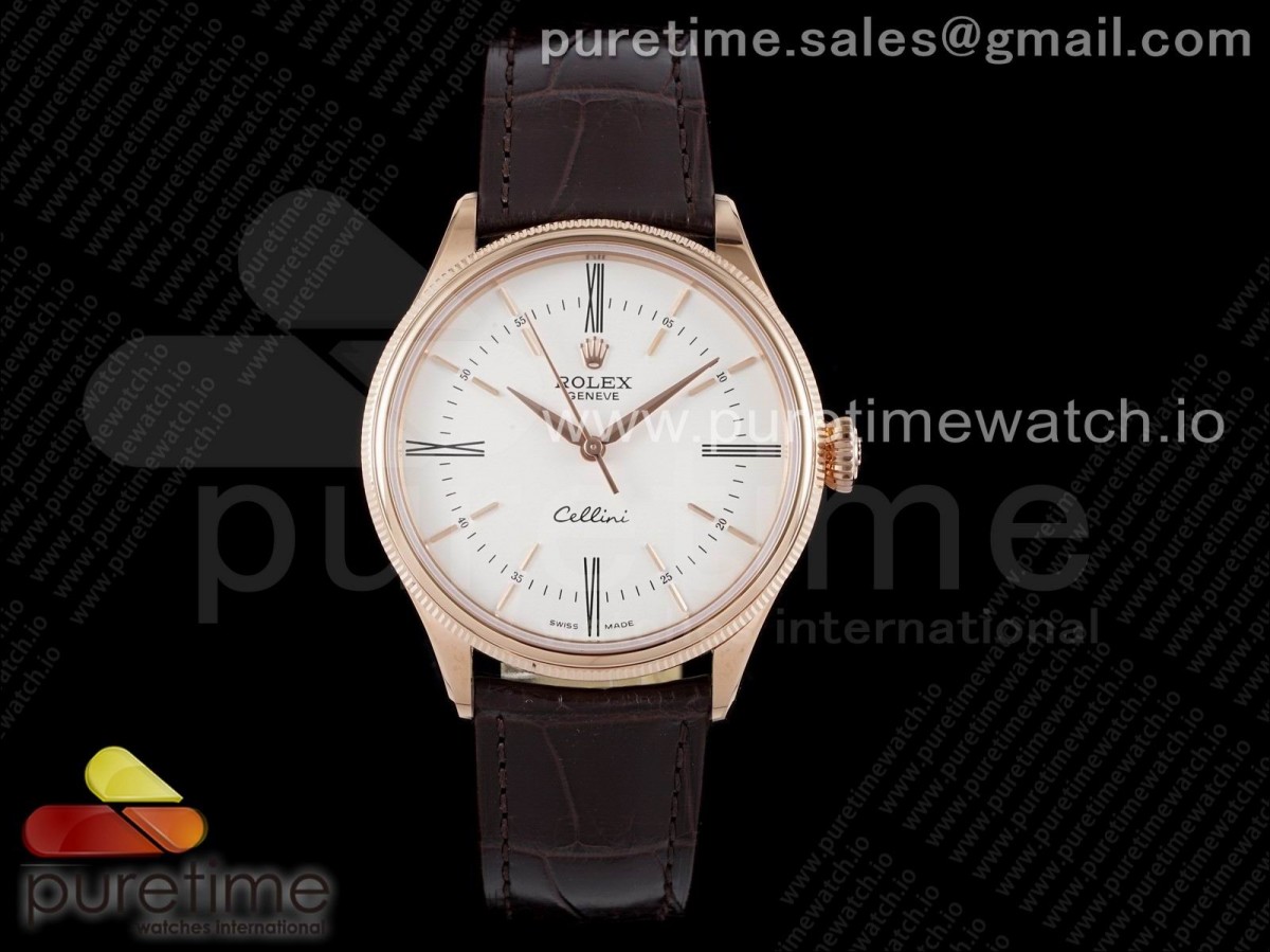 KZF 롤렉스 셀리니 로즈골드 화이트다이얼 로만인덱스 브라운가죽스트랩 Cellini RG KZF 1:1 Best Edition White Dial Roman Markers on Brown Leather Strap SA3132