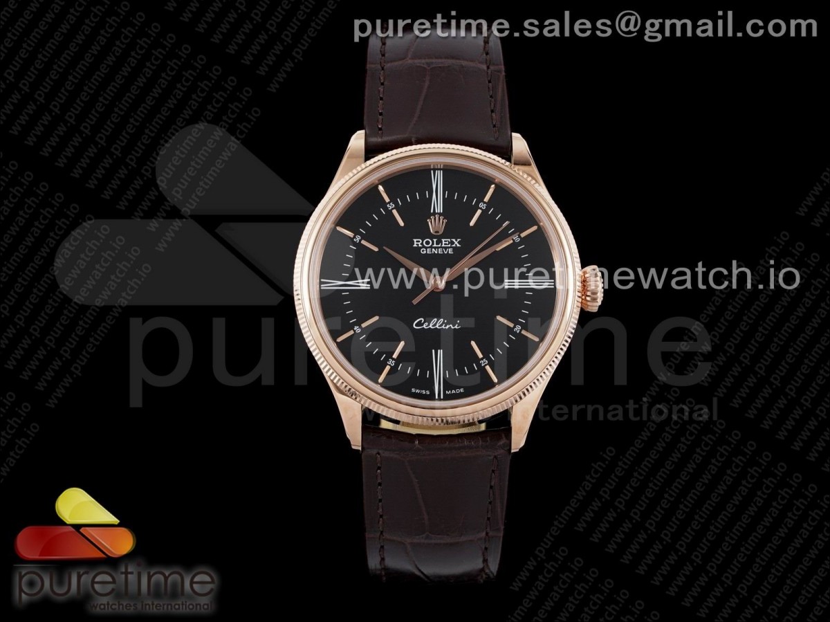 KZF 롤렉스 셀리니 로즈골드 블랙다이얼 로만인덱스 브라운가죽스트랩 Cellini RG KZF 1:1 Best Edition Black Dial on Brown Leather Strap SA3132