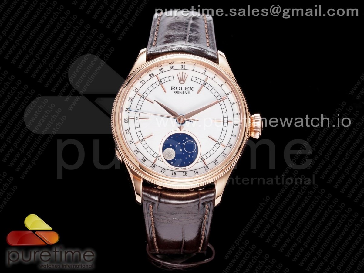 KZF 롤렉스 셀리니 문페이즈 로즈골드 화이트다이얼 브라운가죽스트랩 Cellini 50535 Moonphase RG KZF Best Edition White Dial on Brown Leather Strap A3195