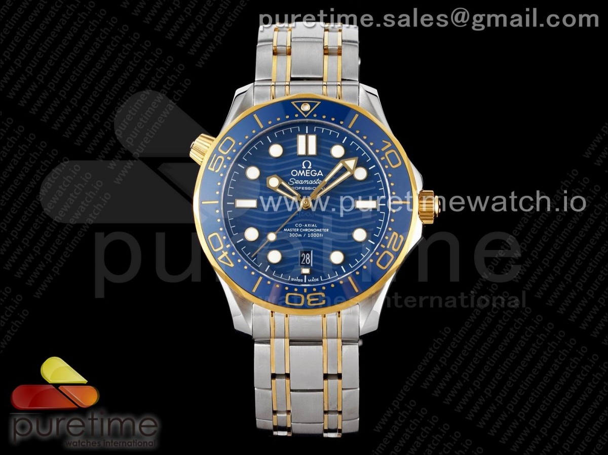 (NEW) VSF 오메가 씨마스터 다이버300 옐로우골드콤비 블루다이얼 스틸브레이슬릿 2018 Seamaster Diver 300M SS/YG VSF 1:1 Best Edition YG Bezel Blue Dial on SS/YG Bracelet A8800