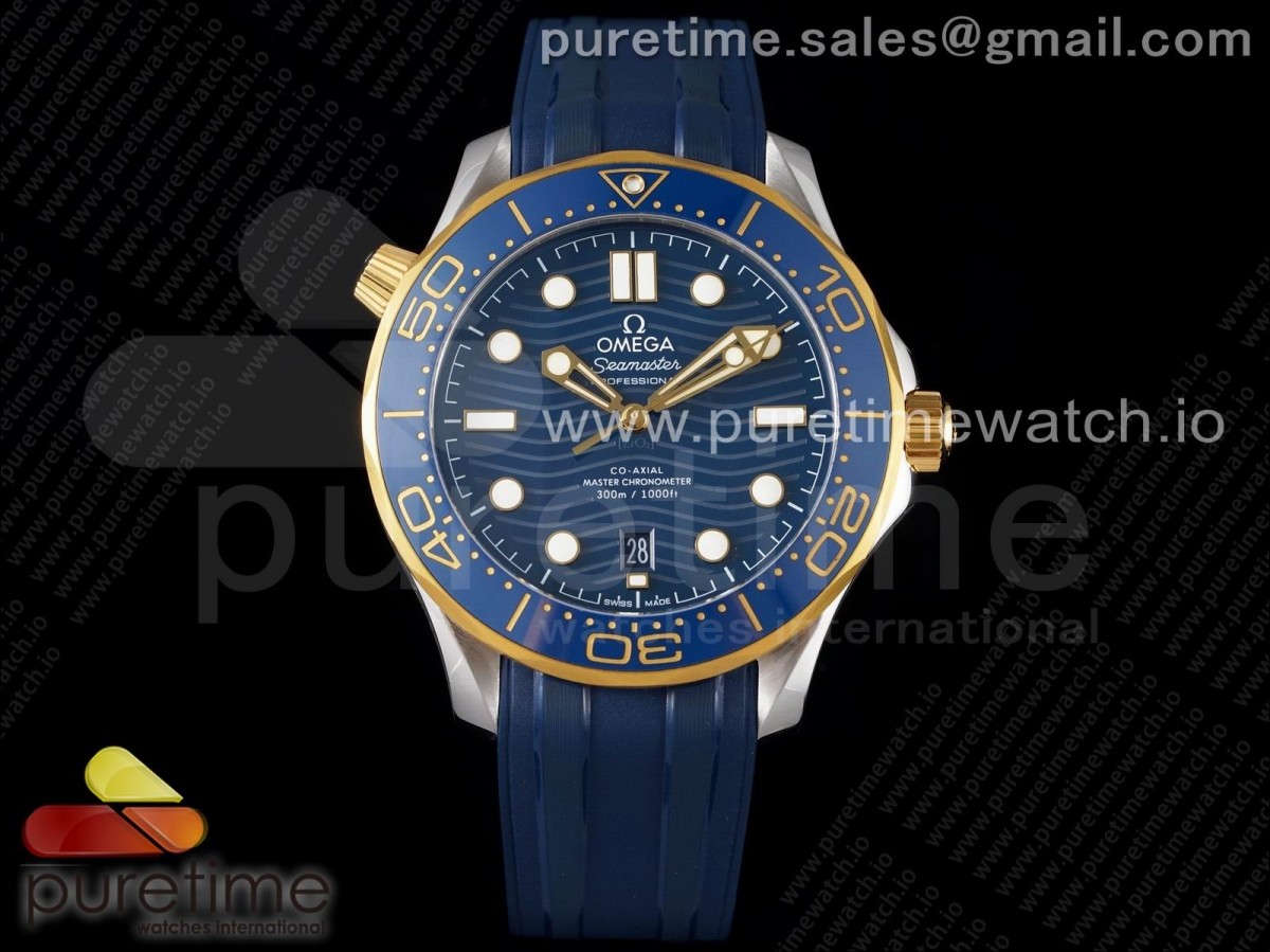 (NEW) VSF 오메가 씨마스터 다이버300 옐로우골드콤비 블루다이얼 블루러버스트랩 2018 2018 Seamaster Diver 300M SS/YG VSF 1:1 Best Edition YG Bezel Blue Dial on Blue Rubber Strap A8800