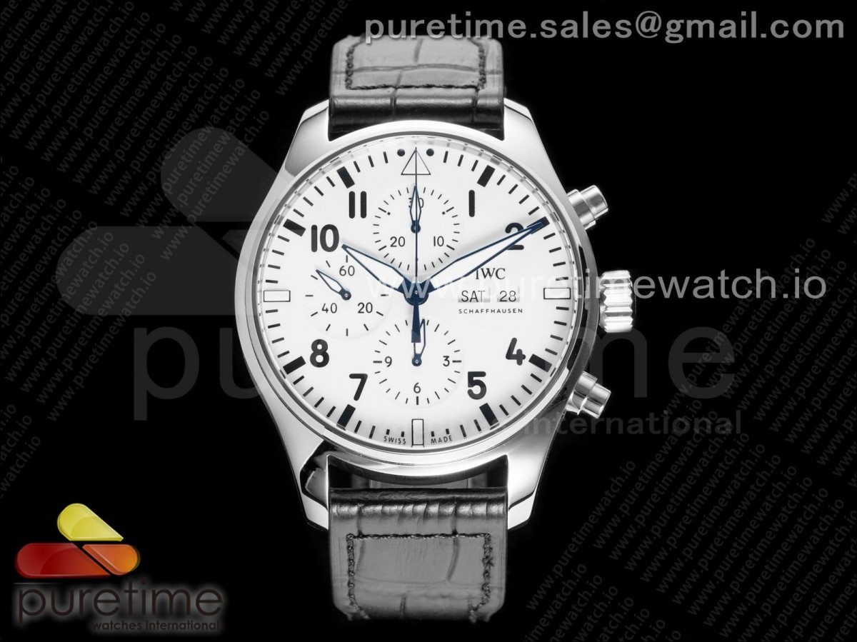 AZF IWC 파일럿 크로노 150주년 화이트다이얼 블랙가죽스트랩 Pilot Chrono 377725 "150 Years" AZF 1:1 Best Edition White Dial on Black Leather Strap A7750