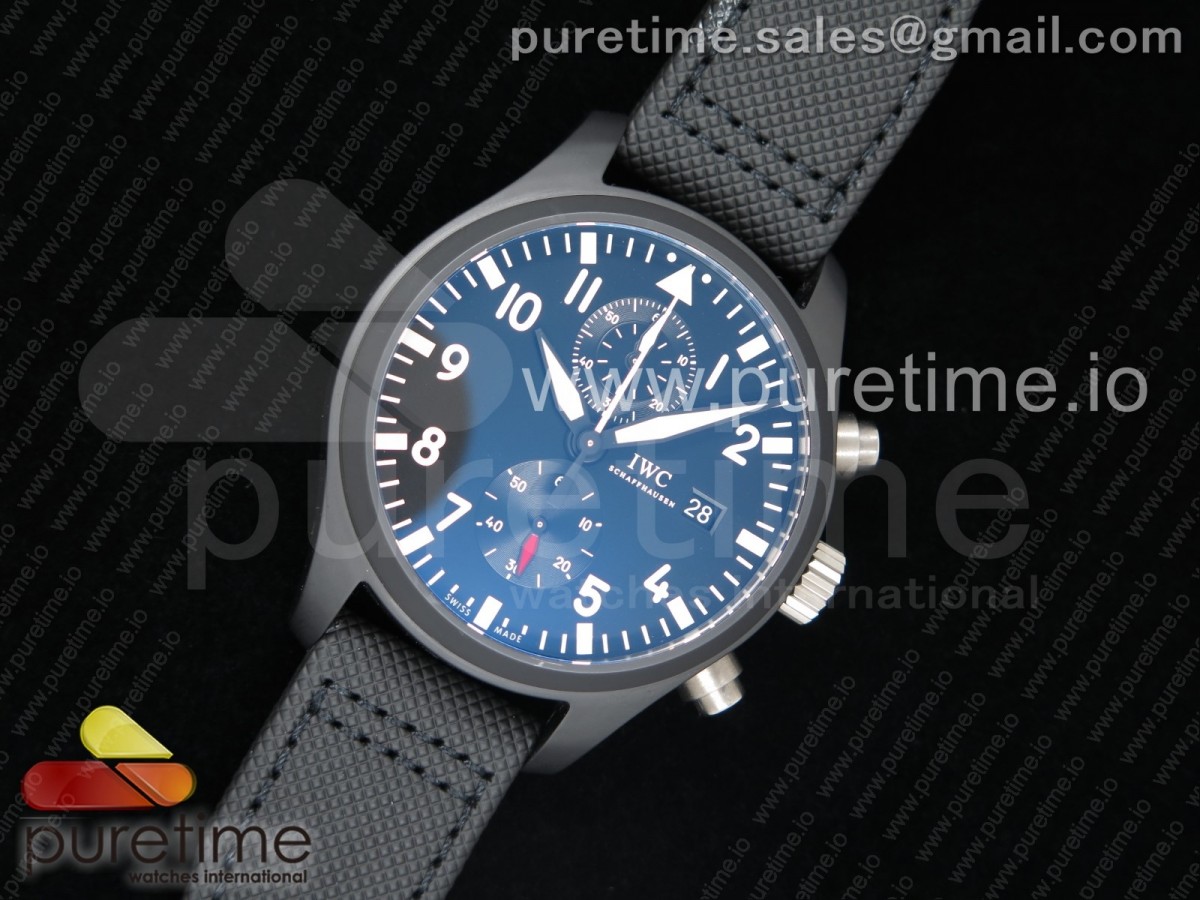 ZF IWC 파일럿 크로노 탑건 리얼세라믹 블랙다이얼 블랙카프스킨스트랩 Pilot Chrono Top Gun IW389001 Real Ceramic ZF 1:1 Best Edition Black Dial on Black Calfskin Strap A7750 > 아이더블류씨(IWC)