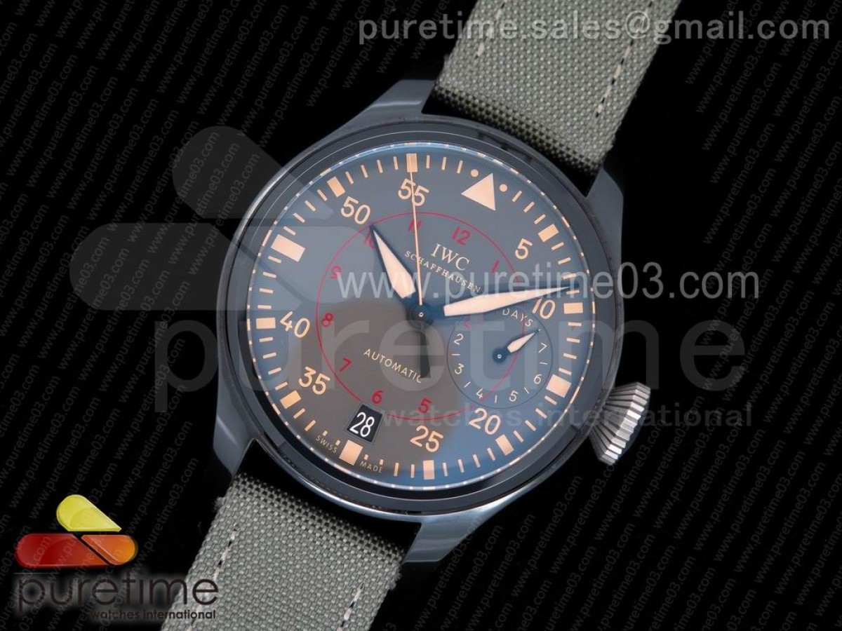 ZF V2 IWC 빅파일럿 리얼세라믹 블랙다이얼 그린나일론스트랩 Big Pilot Real PR 48mm IW501902 Real Ceramic ZF 1:1 Best Edition on Green Nylon Strap A51111 V2