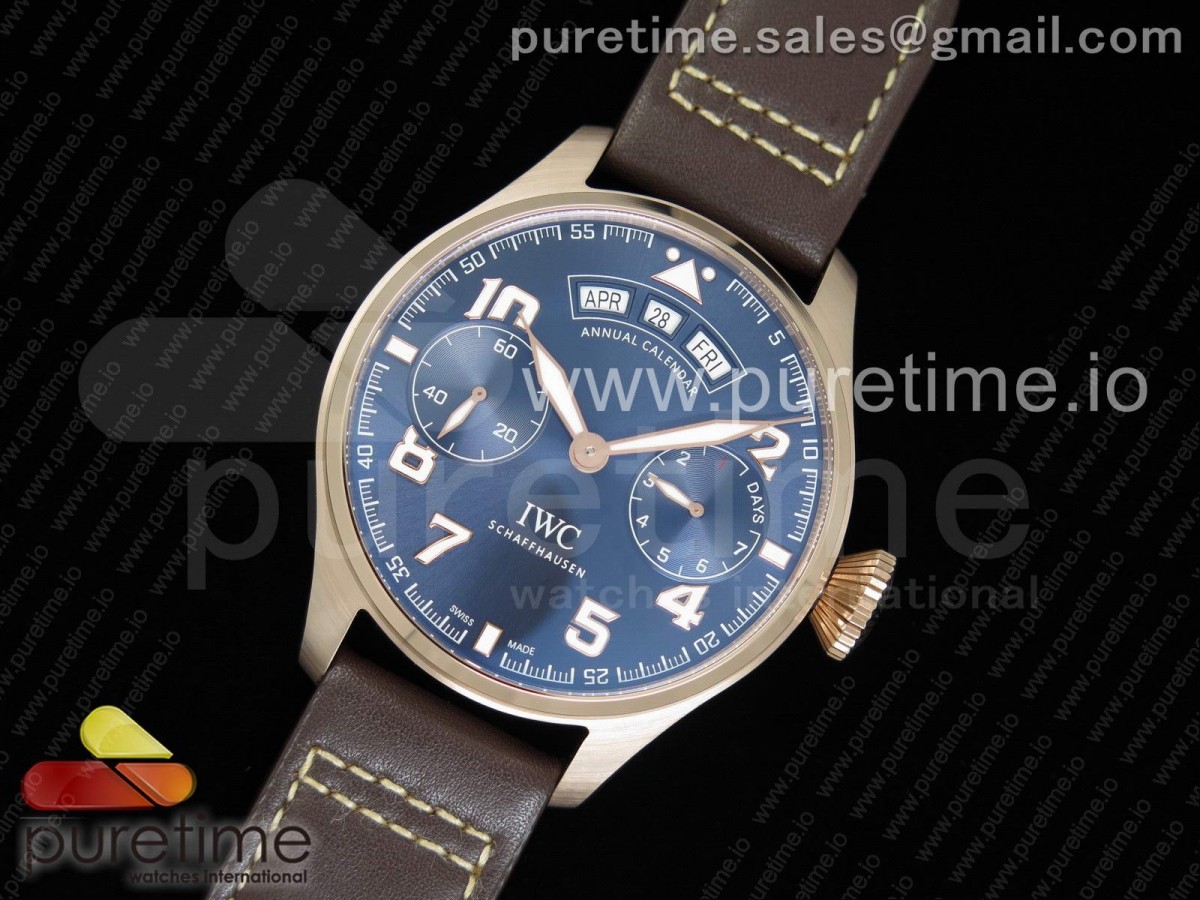 YLF IWC 빅파일럿 애뉴얼캘린더 블루다이얼 로즈골드 브라운가죽스트랩 Big Pilot Real Annual Calendar Real PR RG IW502701 YLF 1:1 Best Edition Blue Dial on Brown Leather Strap A52850 > 아이더블류씨(IWC)
