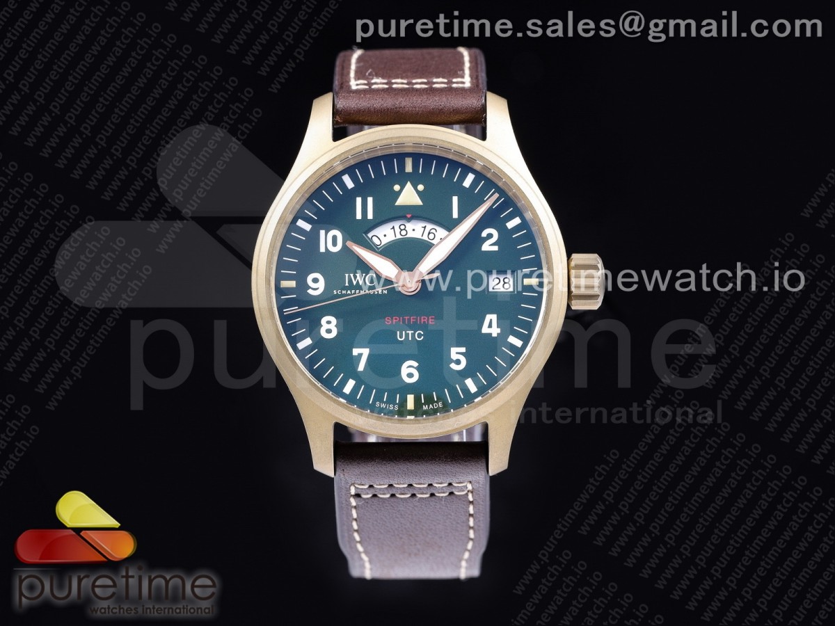 ZF IWC 파일럿 UTC 스핏파이어 브론조 그린다이얼 브라운가죽스트랩 Pilot UTC Spitfire “MJ271” Bronze ZF 1:1 Best Edition Green Dial on Brown Leather Strap A2836