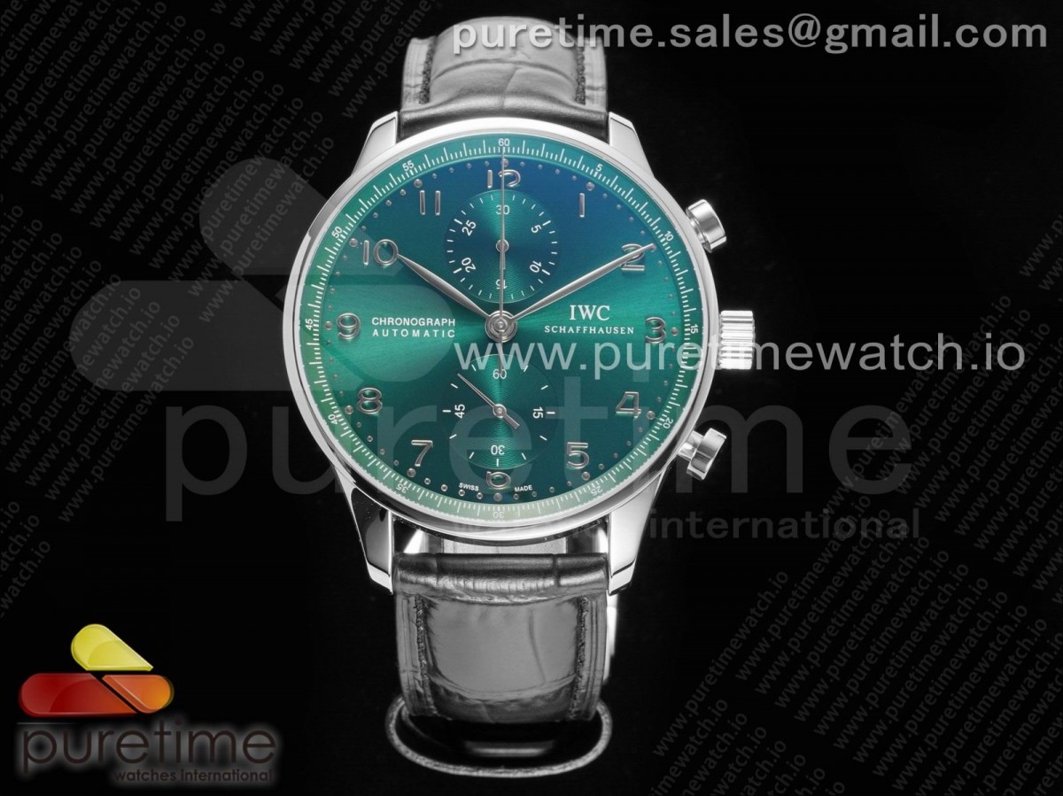 YLF IWC 포르투기저 크로노 그린다이얼 블랙가죽스트랩 Portugieser Chronograph IW371615 YLF Best Edition Green Dial on Black Leather Strap A7750 (Slim Movement)