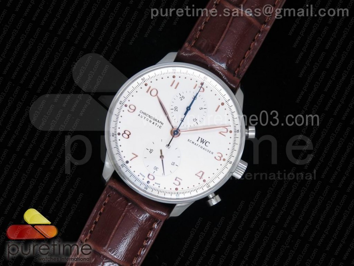 YLF IWC 포르투기저 크로노그래프 화이트다이얼 로즈골드핸즈 브라운가죽스트랩 Portuguese Chrono IW3714 White Dial RG Markers YLF 1:1 Best Edition on Brown Leather Strap A7750 (Same Thickness as Genuine) > 아이더블류씨(IWC)