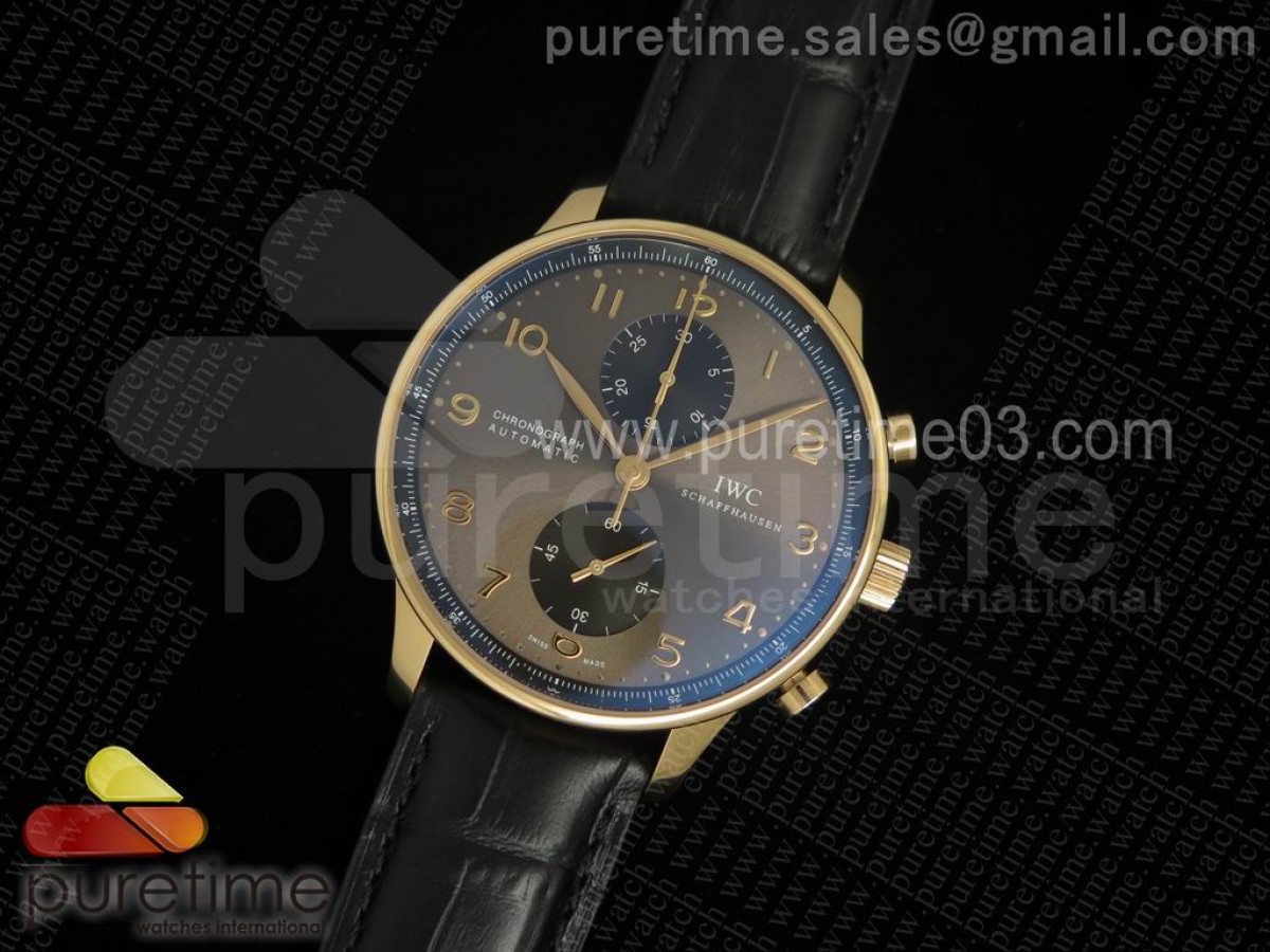 ZF IWC 포르투기저 크로노그래프 로즈골드 그레이다이얼 블랙가죽스트랩 Portuguese Chrono IW371482 ZF 1:1 Best Edition on Black Leather Strap A7750 (Same Thickness as Genuine) > 아이더블류씨(IWC)