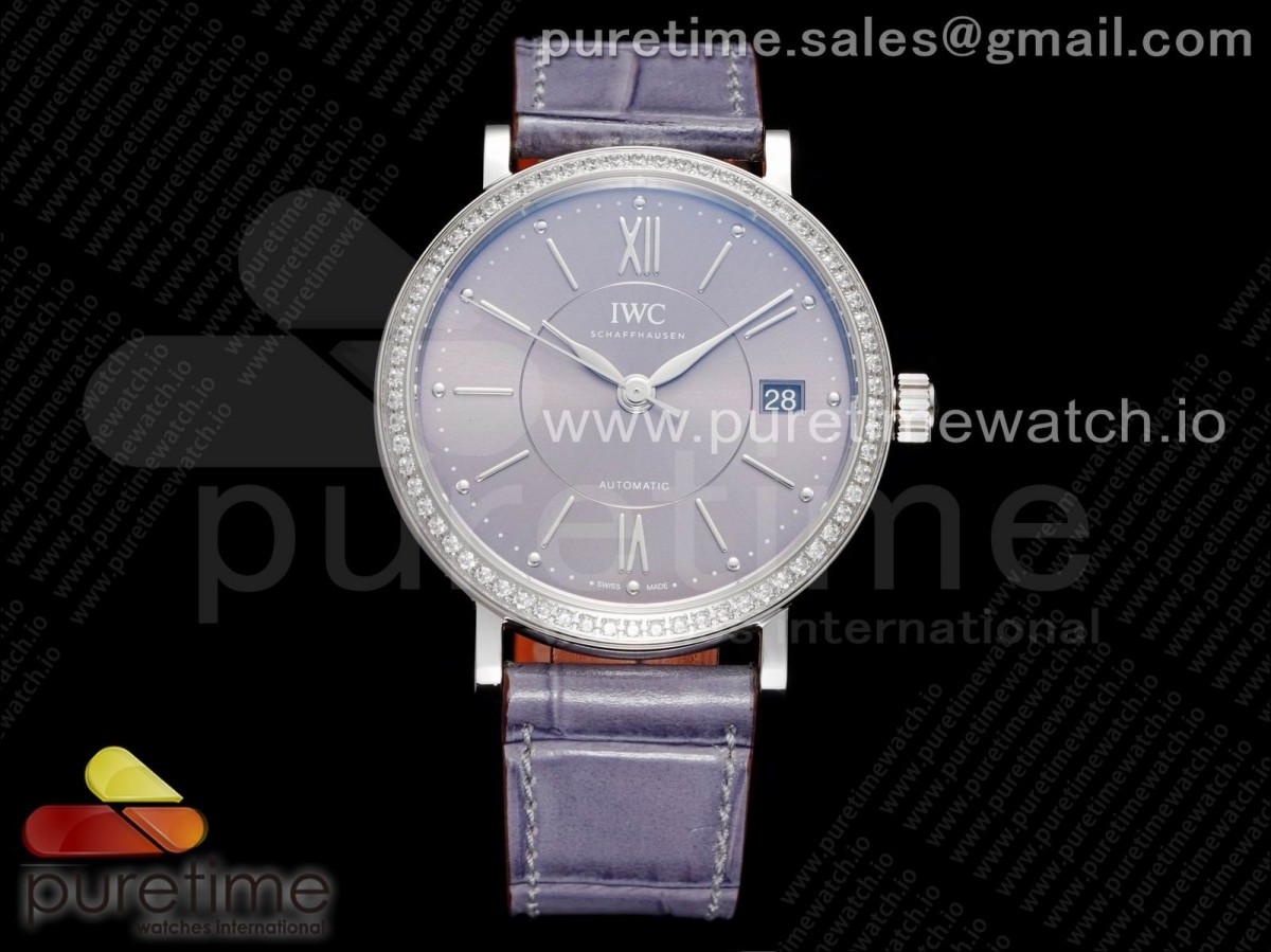 V7F IWC 포르토피노 37미리 그레이다이얼 다이아베젤 그레이가죽스트랩 Portofino 37mm SS V7F 1:1 Best Edition Gray Dial Diamonds Bezel on Gray Leather Strap A2892