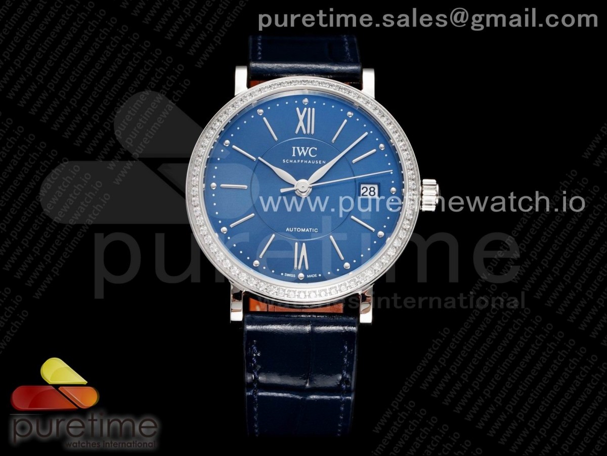 V7F IWC 포르토피노 37미리 블루다이얼 다이아베젤 블루가죽스트랩 Portofino 37mm SS V7F 1:1 Best Edition Blue Dial Diamonds Bezel on Blue Leather Strap A2892 > 아이더블류씨(IWC)