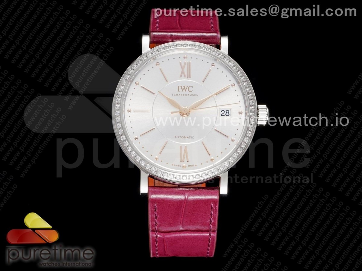 V7F IWC 포르토피노 37미리 화이트다이얼 다이아베젤 핑크가죽스트랩 Portofino 37mm SS V7F 1:1 Best Edition White Dial Diamonds Bezel on Pink Leather Strap A2892