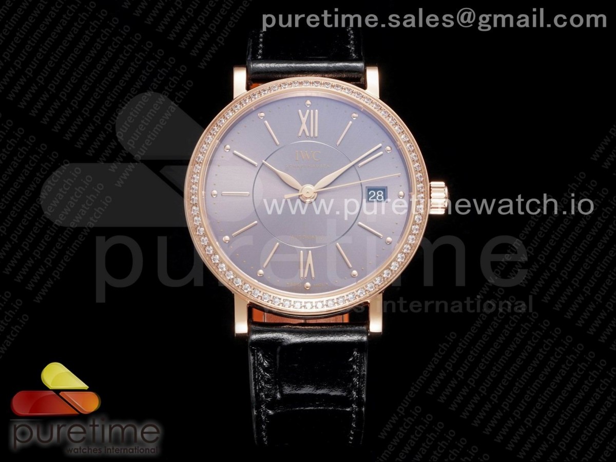 V7F IWC 포르토피노 로즈골드 37미리 그레이다이얼 다이아베젤 블랙가죽스트랩 Portofino 37mm RG V7F 1:1 Best Edition Gray Dial Diamonds Bezel on Black Leather Strap A2892