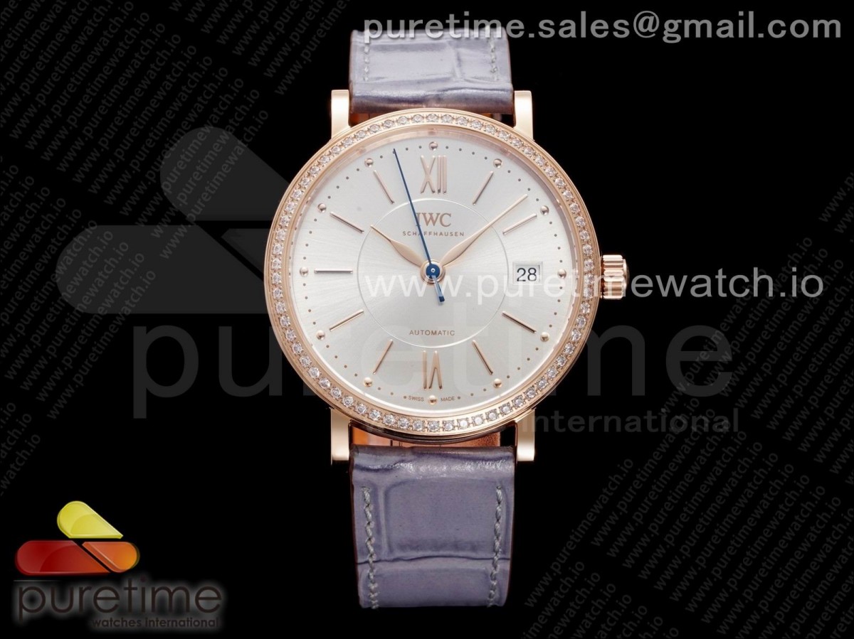 V7F IWC 포르토피노 로즈골드 37미리 실버다이얼 다이아베젤 그레이가죽스트랩 Portofino 37mm RG V7F 1:1 Best Edition Silver Dial Diamonds Bezel on Gray Leather Strap A2892