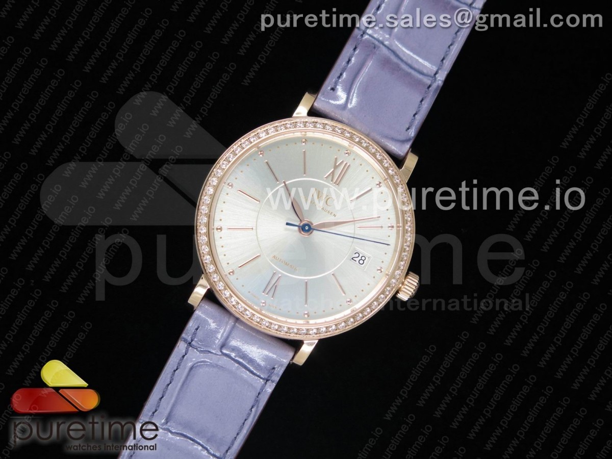 MKF IWC 포르토피노 37미리 실버다이얼 로즈골드 다이아베젤 퍼플가죽스트랩 Portofino Automatic 37 RG MK 1:1 Best Edition Silver Dial Diamonds Bezel on Light Pueple Leather Strap MIYOTA 9015