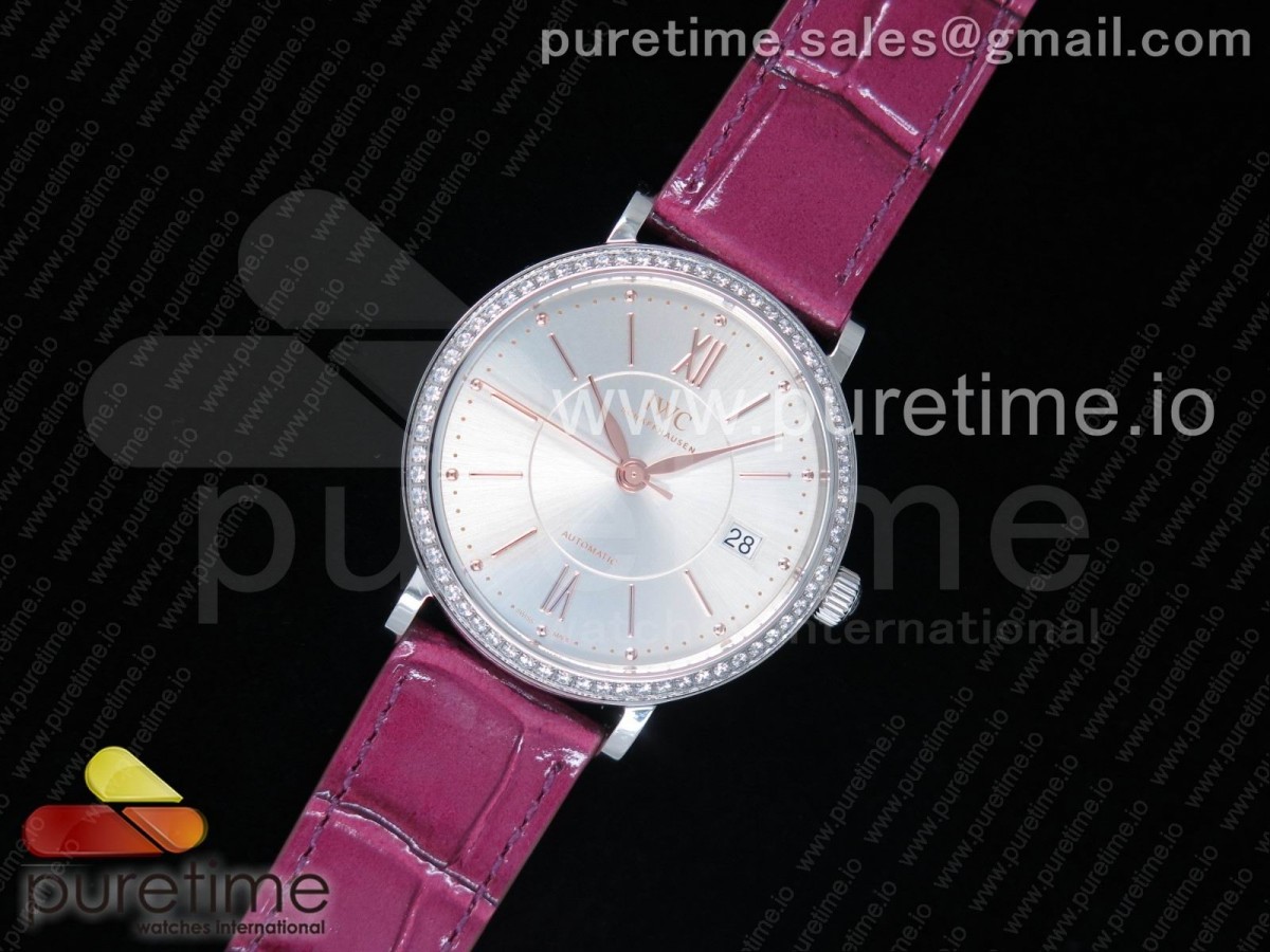 MKF IWC 포르토피노 37미리 실버다이얼 다이아베젤 핑크가죽스트랩 Portofino Automatic 37 SS MK 1:1 Best Edition Silver Dial Diamonds Bezel on Pueple Leather Strap MIYOTA 9015