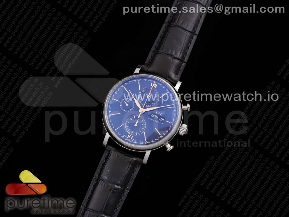 ZF IWC 포르토피노 크로노 150주년 블루다이얼 골드핸즈 블랙가죽스트랩 Portofino Chrono SS ZF 1:1 Best Edition Blue Dial Gold Markers on Black Leather Strap A7750