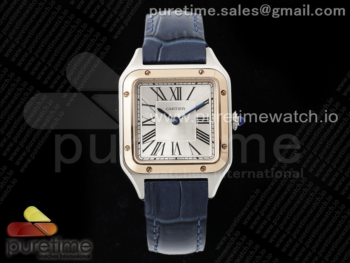 AF 까르띠에 산토스 뒤몽 27.5미리 로즈골드콤비 실버다이얼 블루악어가죽스트랩 Santos Dumont 27.5mm SS/RG AF 1:1 Best Edition Silver Dial on Blue Croco Strap A157