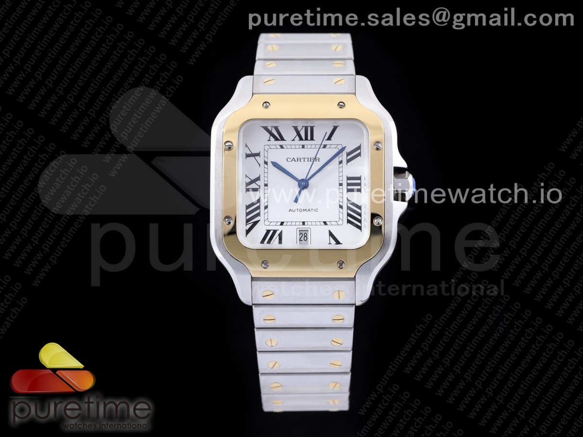 KORF V2 산토스 드 까르띠에 골드 콤비 라지 40미리 Santos de Cartier 40mm SS/YG KOR 1:1 Best Edition White Dial on SS/YG SmartLinks Bracelet MIYOTA 9015 V2 (Free Leather)