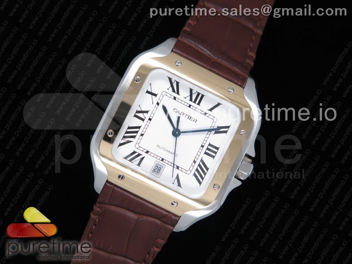 V6F 산토스 드 까르띠에 골드콤비 라지 40미리 가죽스트랩 Santos de Cartier 40mm 2018 V6F 1:1 Best Edition White Dial YG Bezel on Deep Brown Leather Strap MIYOTA 9015 > 까르띠에(CARTIER)