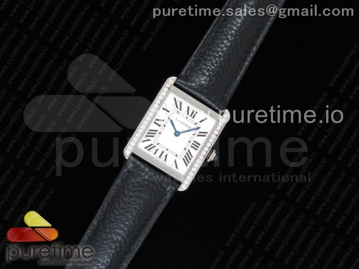 AF 탱크솔로 스몰 25미리 화이트다이얼 다이아베젤 블랙 가죽스트랩 Tank Solo Ladies 25mm SS AF 1:1 Best Edition White Dial Diamonds Bezel on Black Leather Strap Ronda Quartz > 까르띠에(CARTIER)
