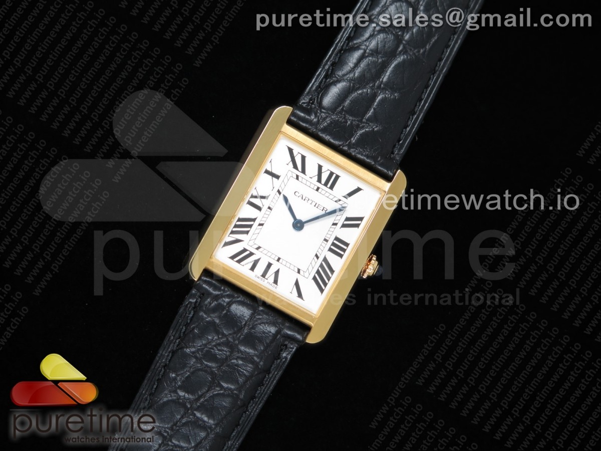 K11F 탱크솔로 라지 27미리 화이트다이얼 옐로우골드 금통 블랙 악어가죽스트랩 Tank Solo 27.5mm K11F YG White Dial on Black Leather Strap Ronda Quartz