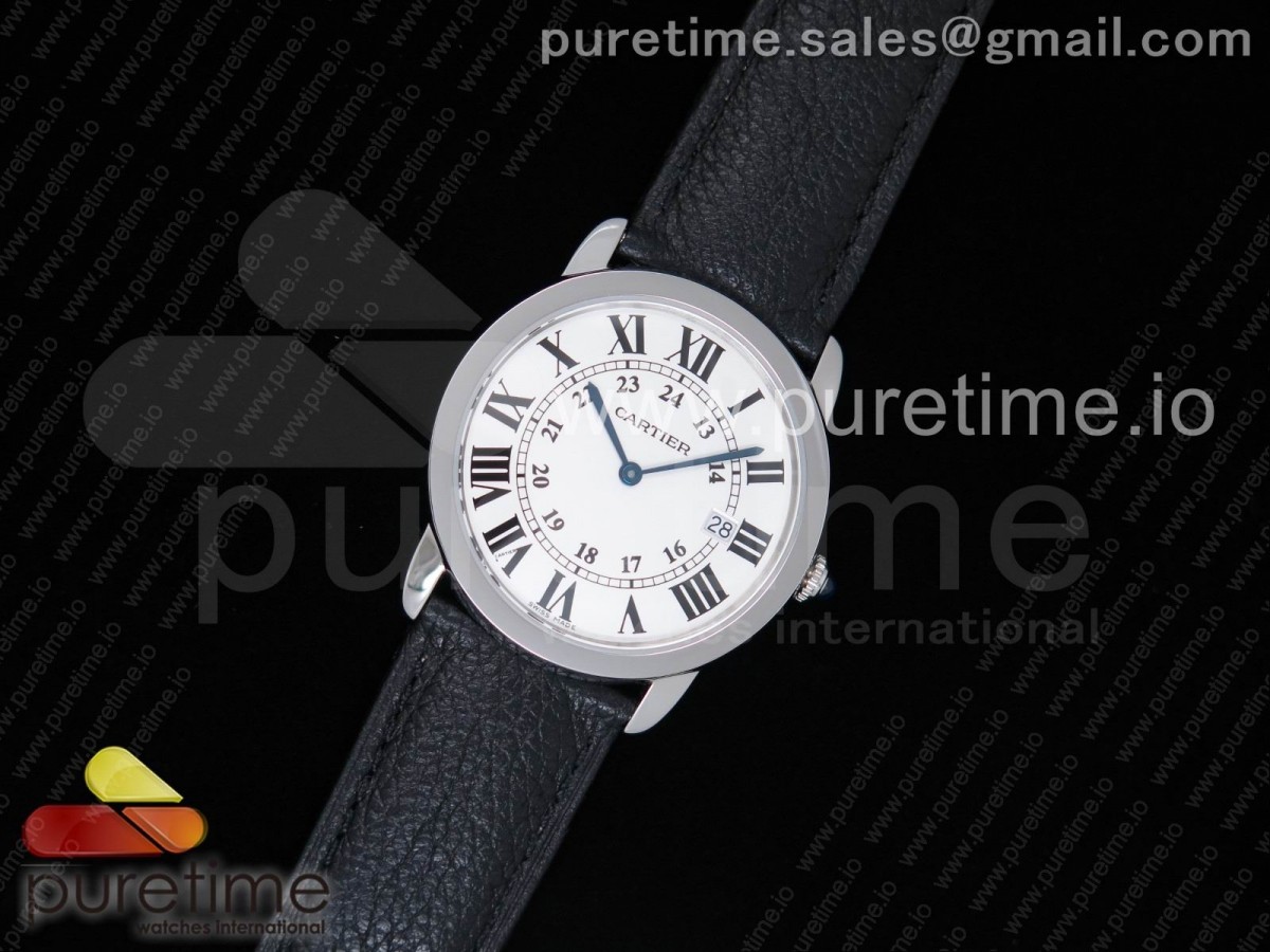 K11F 롱드솔로 미듐 36미리 화이트다이얼 블랙가죽스트랩 Ronde Solo De Cartier 36mm SS K11 Maker White Dial on Black Leather Strap Ronda Quartz