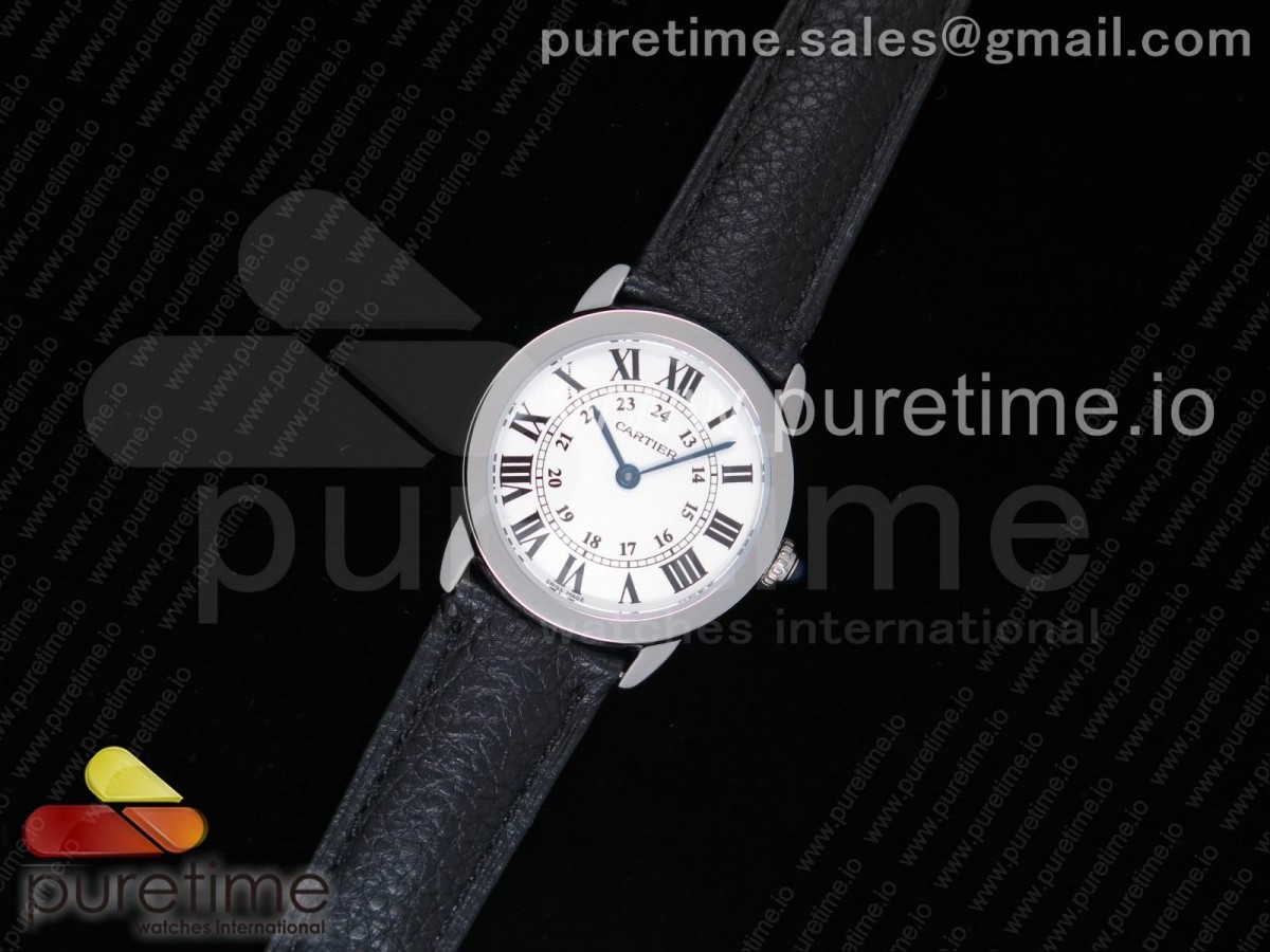 K11F 롱드솔로 스몰 29미리 화이트다이얼 블랙가죽스트랩 Ronde Solo De Cartier 29mm SS K11 Maker White Dial on Black Leather Strap Ronda Quartz