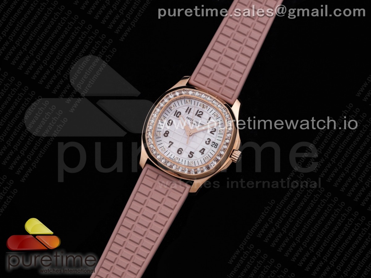 PPF 파텍필립 아쿠아넛5068 로즈골드 화이트다이얼 다이아베젤 핑크러버스트랩 Aquanaut 5068 RG PPF 1:1 Best Edition White Textured Dial on Pink Rubber Strap 324CS