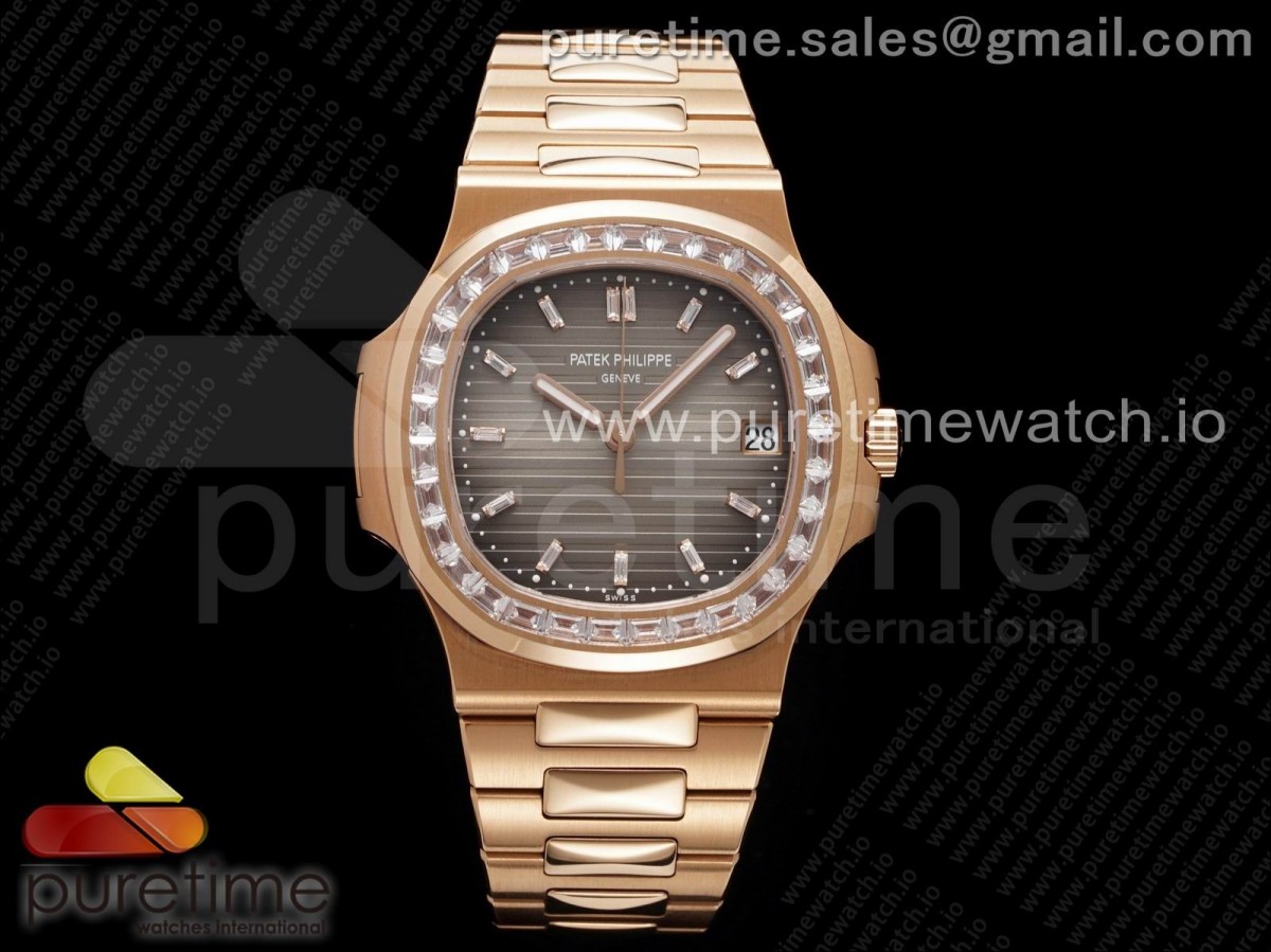 PPF V4 파텍필립 노틸러스5711 로즈골드 브라운그레이다이얼 다이아베젤,인덱스 스틸브레이슬릿 Nautilus 5711 RG PPF 1:1 Best Edition Brown Dial Diamonds Markers and Bezel on RG Bracelet 324CS (Free box) V3