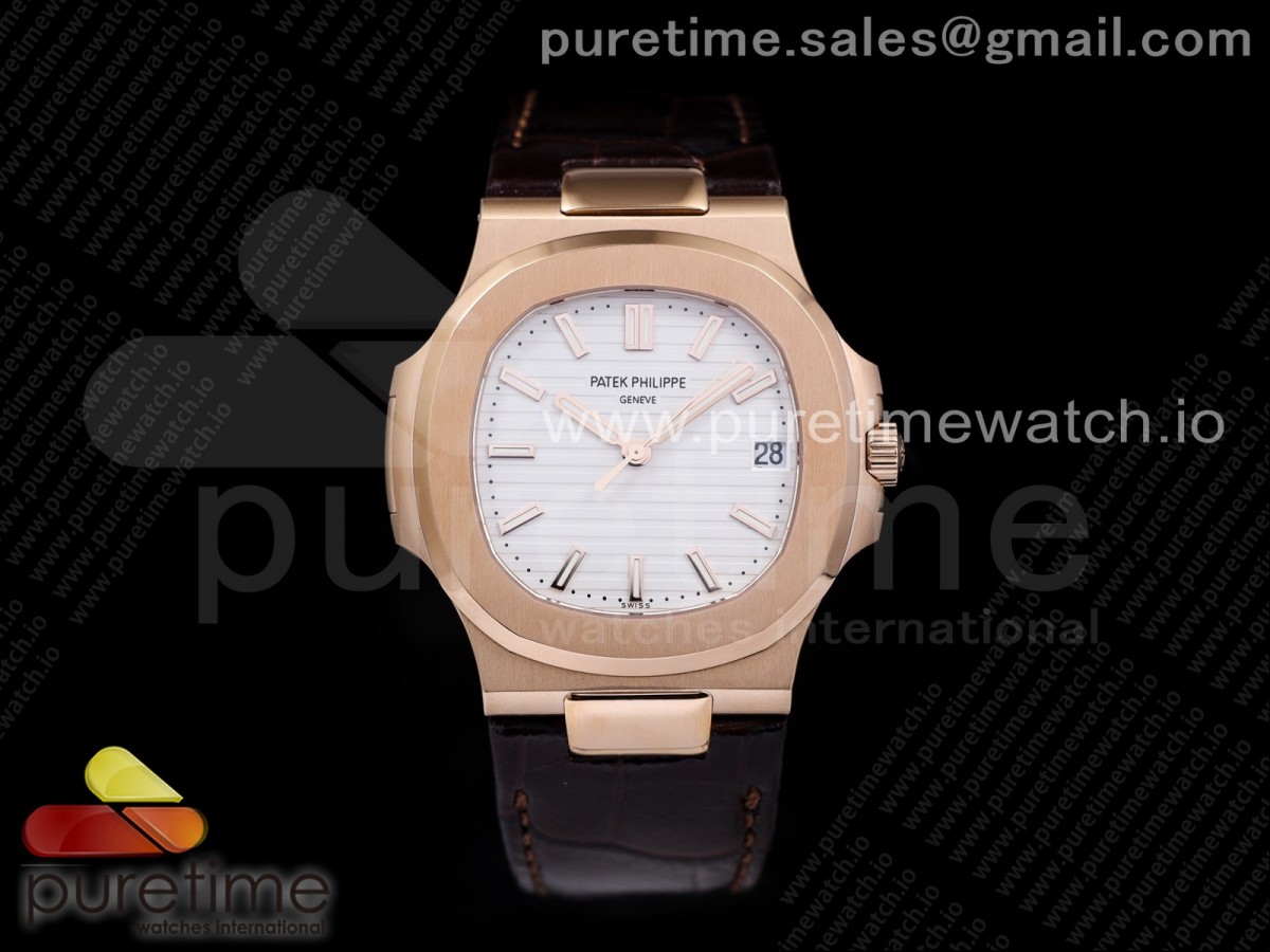 PPF 파텍필립 노틸러스5711 로즈골드 화이트다이얼 브라운가죽스트랩 Nautilus 5711/1R PPF 1:1 Best Edition White Textured Dial on Brown Leather Strap 324CS (Free box)