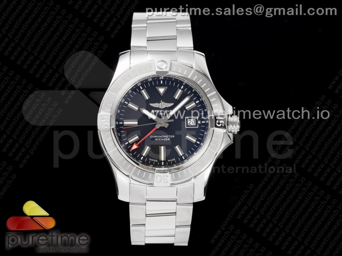 GF 브라이틀링 어벤져 지엠티 블랙다이얼 스틸브레이슬릿 Avenger GMT 45mm SS GF 1:1 Best Edition Black Dial on SS Bracelet A2836