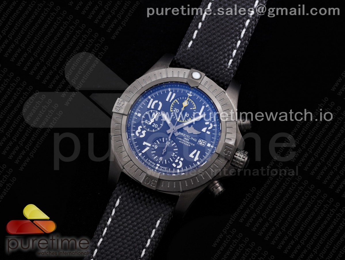 OXF 브라이틀링 어벤져2 씨울프 크로노 PVD티타늄 블랙다이얼 블랙나일론스트랩 Avenger II Seawolf Chronograph PVD Titanium OXF Best Edition Black Dial on Black Nylon Strap A7750 > 브라이틀링(BREITLING)