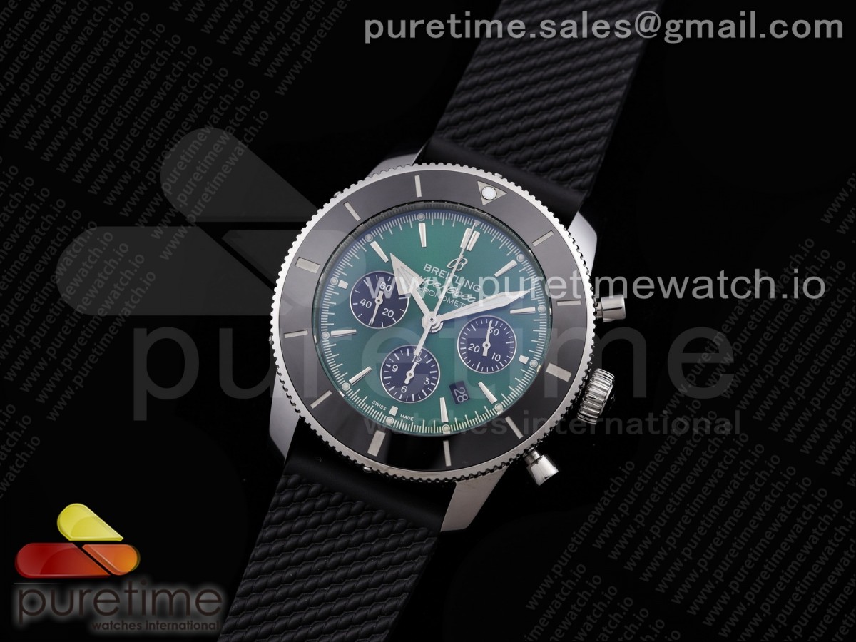 OXF 브라이틀링 슈퍼오션 헤리티지2 크로노 그린다이얼 블랙러버스트랩 Superocean Heritage II B01 Chrono 44 SS OXF Best Edition Green Dial on Black Rubber Strap A7750 > 브라이틀링(BREITLING)