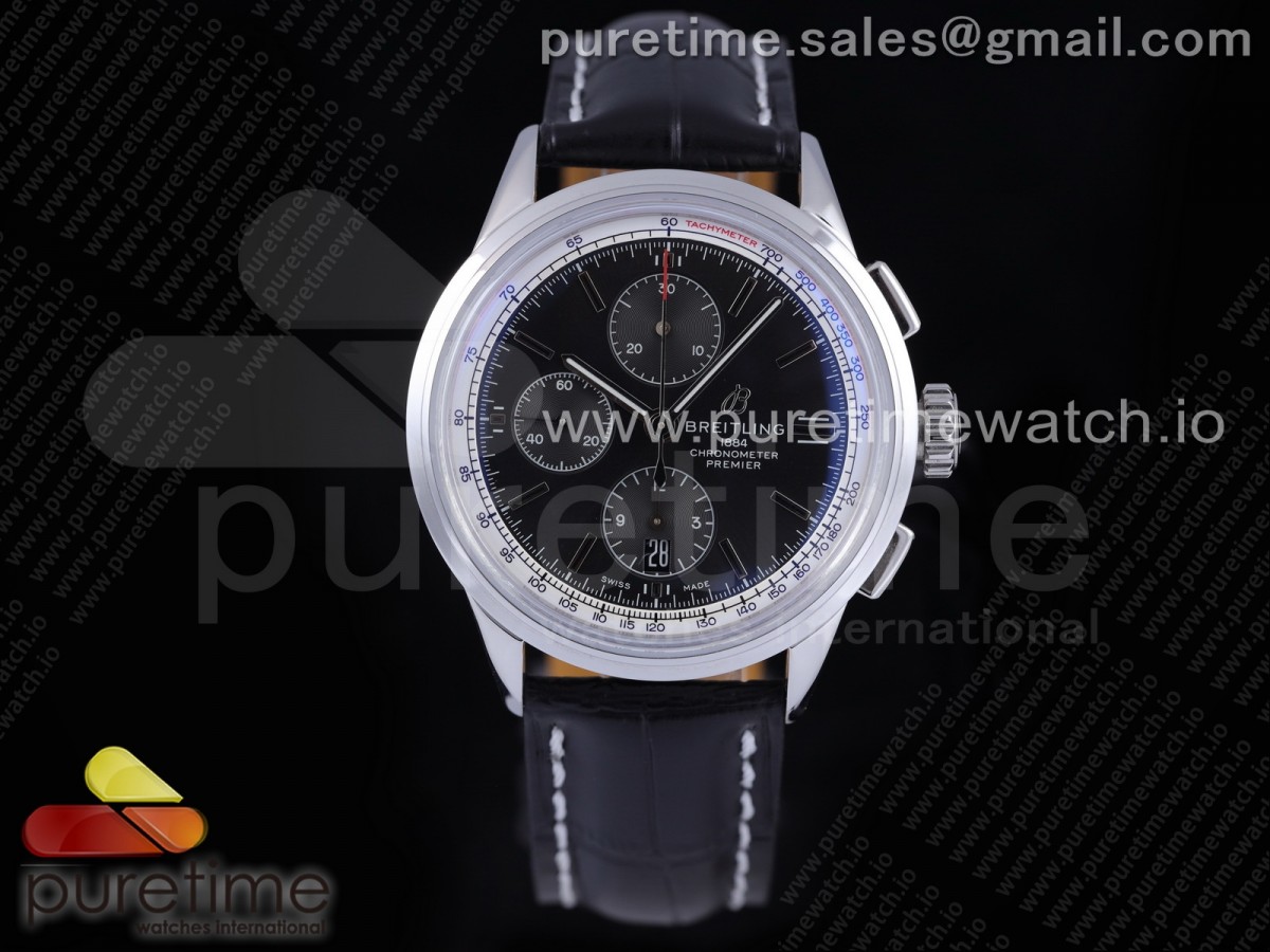 OXF 브라이틀링 프리미어 크로노 블루다이얼 블랙가죽스트랩 Premier Chronograph 42 OXF 1:1 Best Edition Black Dial on Black Leather Strap A7750 > 브라이틀링(BREITLING)