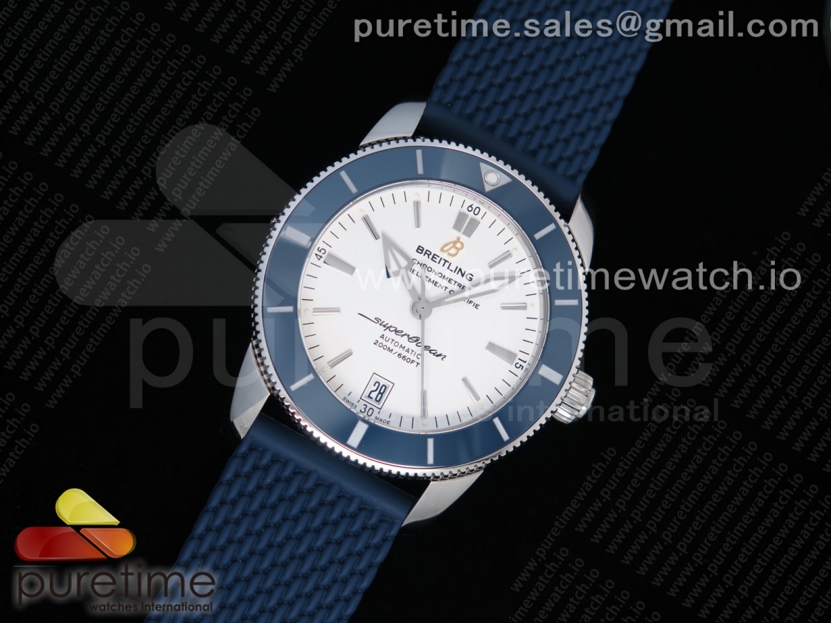 GF V2 브라이틀링 슈퍼오션 헤리티지 화이트다이얼 블루러버스트랩 SuperOcean Heritage ii 42mm SS GF 1:1 Best Edition White Dial Blue Bezel on Blue Rubber Strap A2824 V2 > 브라이틀링(BREITLING)