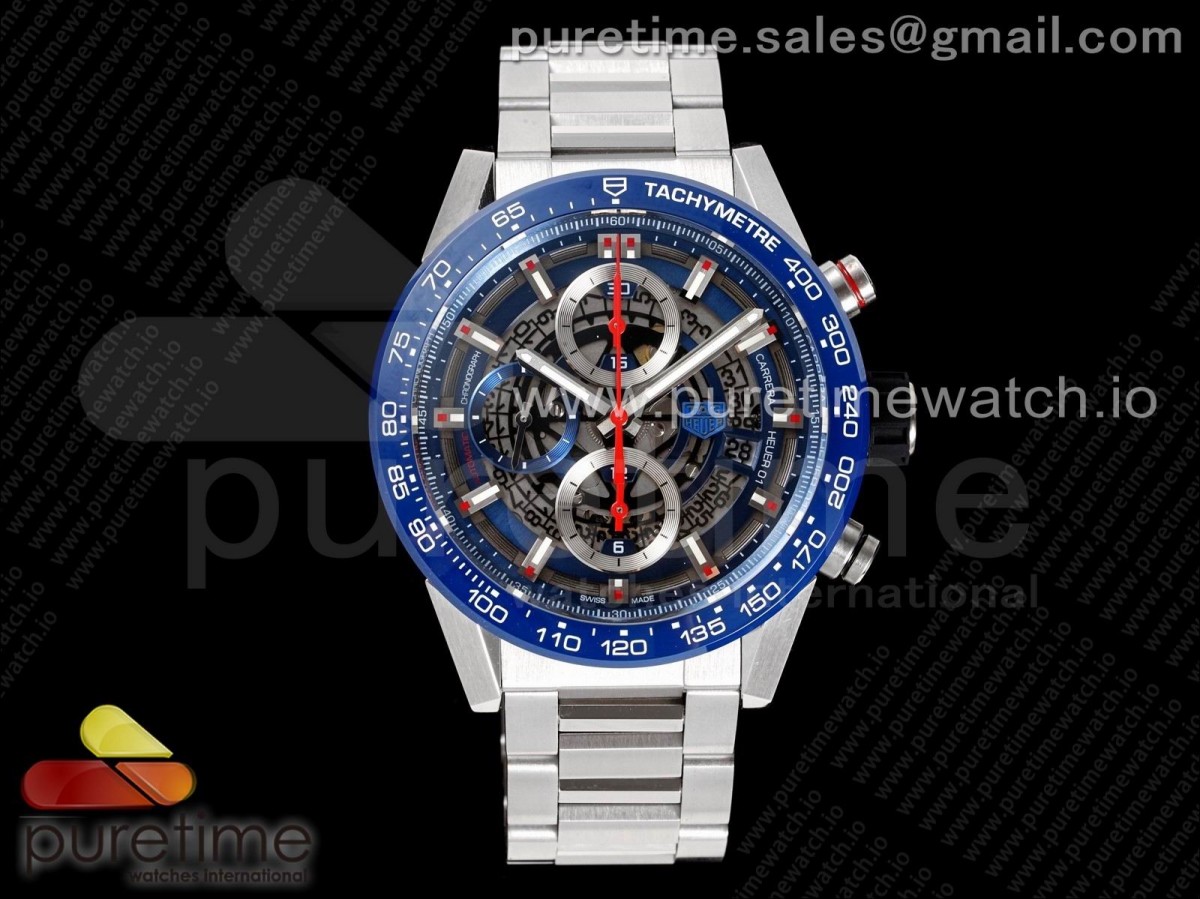 XF 태크호이어 칼리버호이어01 크로노 블루 스켈레톤다이얼 스틸브레이슬릿 Calibre Heuer 01 Chrono 43mm Blue Ceramic SS XF 1:1 Best Edition Skeleton Dial on SS Bracelet A1887 > 태그호이어(TAG HEUER)