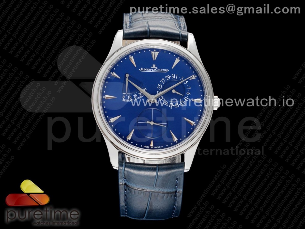 ZF V3 예거 마스터 울트라씬 마르쉐 블루다이얼 블루가죽스트랩 Master Ultra Thin Réserve de Marche SS ZF 1:1 Best Edition Blue Dial on Blue Leather Strap SA938 V3 > 예거(JAEGER LE COULTRE)