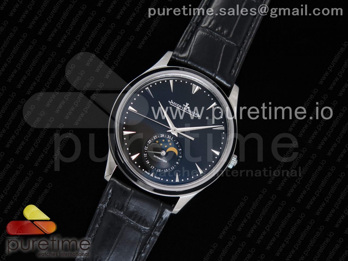 ZF 예거 마스터 울트라씬문 블랙다이얼 블랙가죽스트랩 Master Ultra Thin Moon 1368470 SS ZF 1:1 Best Edition Black Dial on Black Leather Strap A925 > 예거(JAEGER LE COULTRE)