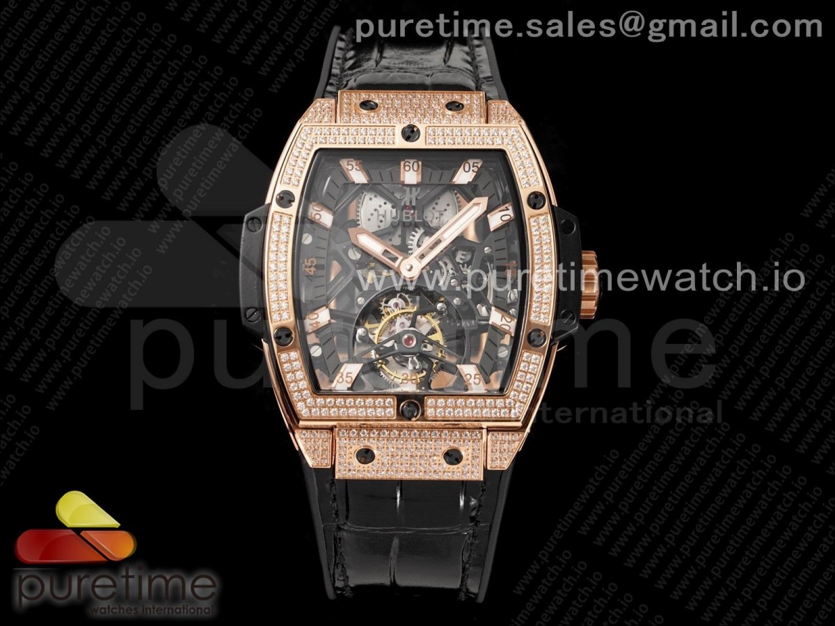V9F 위블로 스피릿 빅뱅 뚜르비옹 로즈골드 스켈레톤다이얼 다이아베젤 블랙거미스트랩 Spirit of Big Bang RG V9F Best Edition Skeleton Dial Diamonds Bezel on Black Gummy Strap