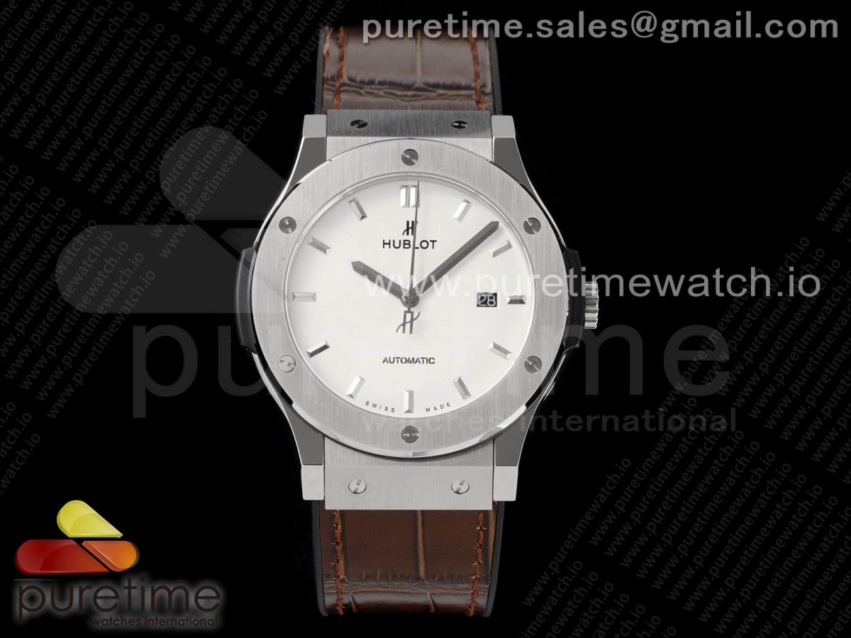 HBF 위블로 클래식퓨전 45미리 화이트다이얼 브라운거미스트랩 Classic Fusion 45mm SS HBF 1:1 Best Edition White Dial on Brown Gummy Strap A2892 > 위블로(HUBLOT)
