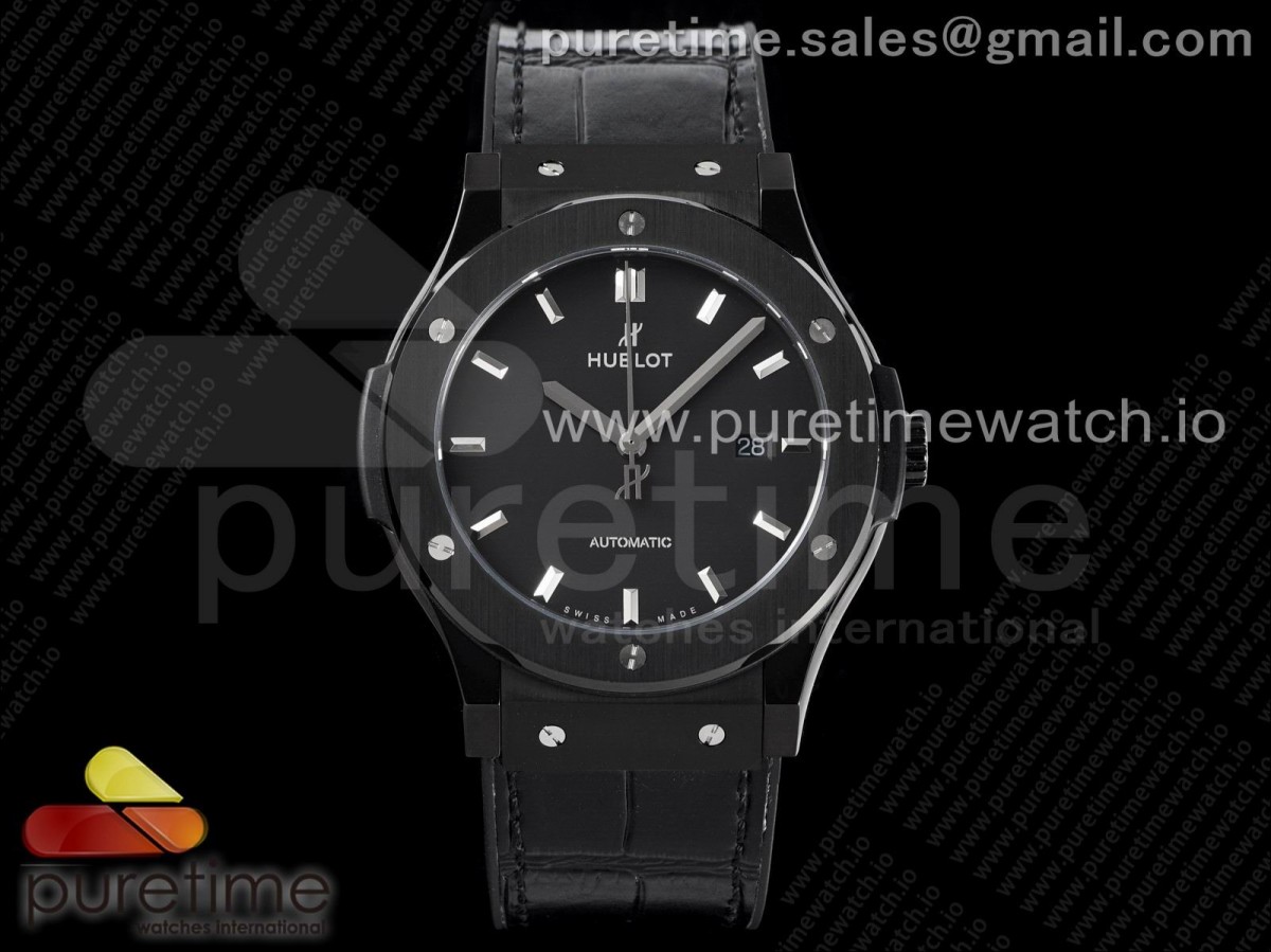 HBF 위블로 클래식퓨전 PVD블랙 45미리 블랙다이얼 블랙거미스트랩 Classic Fusion 45mm PVD HBF 1:1 Best Edition Black Dial on Black Gummy Strap A2892