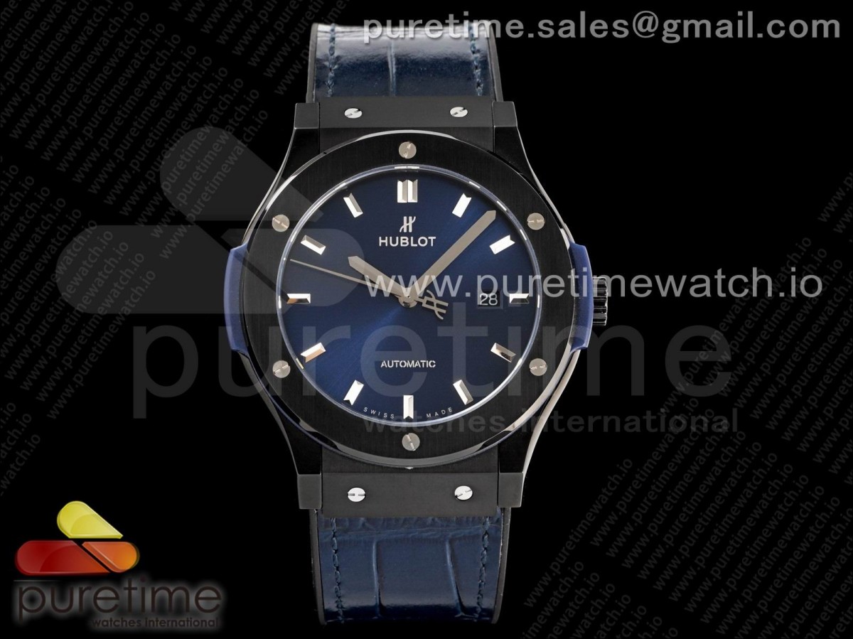HBF 위블로 클래식퓨전 PVD블랙 45미리 블루다이얼 블루거미스트랩 Classic Fusion 45mm PVD HBF 1:1 Best Edition Blue Dial on Blue Gummy Strap A2892