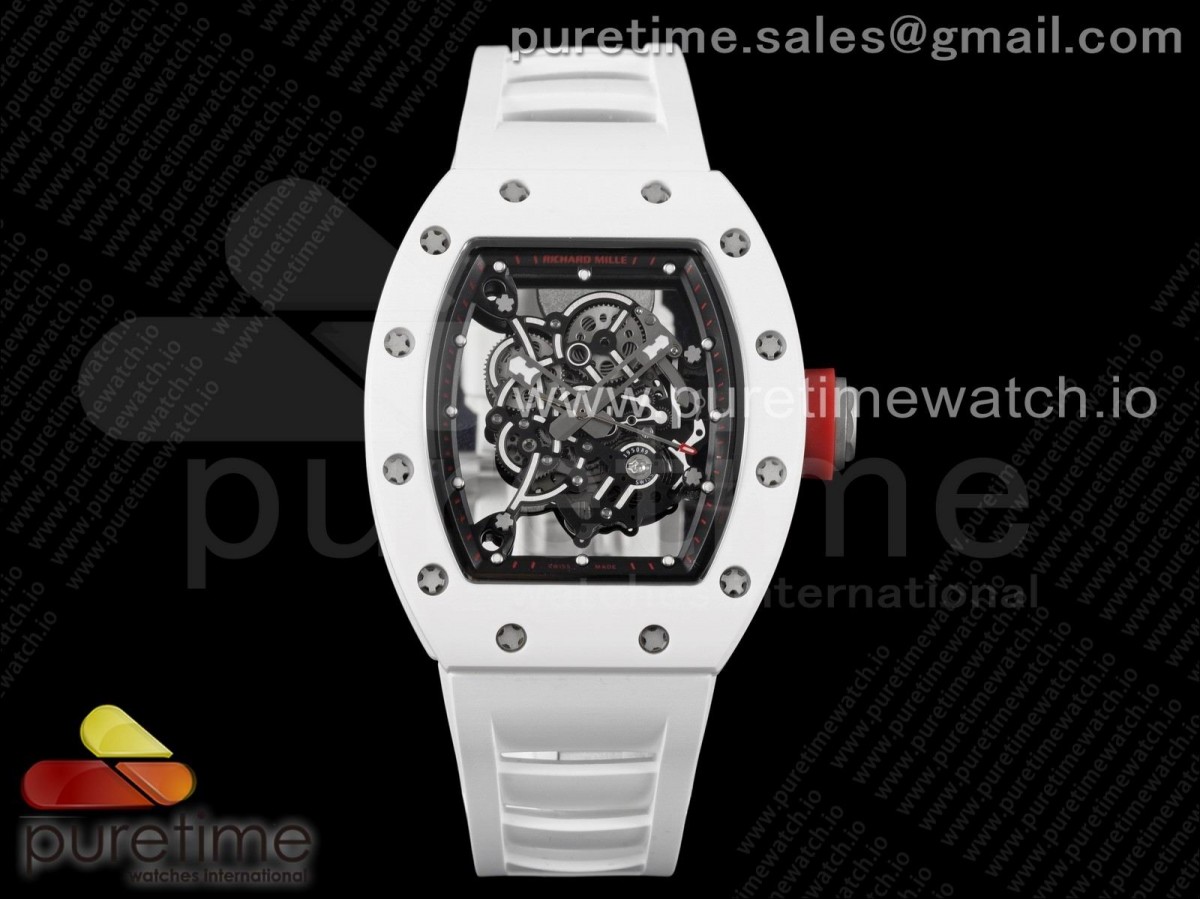 KVF V3 리차드밀 RM055 화이트블랙세라믹 블랙스켈레톤다이얼 화이트러버스트랩 RM055 White Ceramic KVF Best Edition Skeleton Dial Black Case on White Rubber Strap MIYOTA8215 V3 > 리차드밀(RICHARD MILLE)