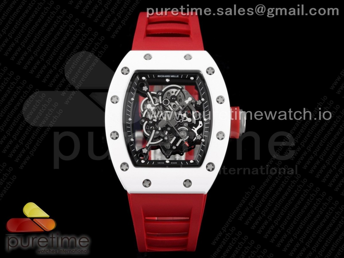 KVF V3 리차드밀 RM055 화이트세라믹 블랙스켈레톤다이얼 레드러버스트랩 RM055 White Ceramic KVF Best Edition Skeleton Dial Black on Red Rubber Strap MIYOTA8215 V3 > 리차드밀(RICHARD MILLE)
