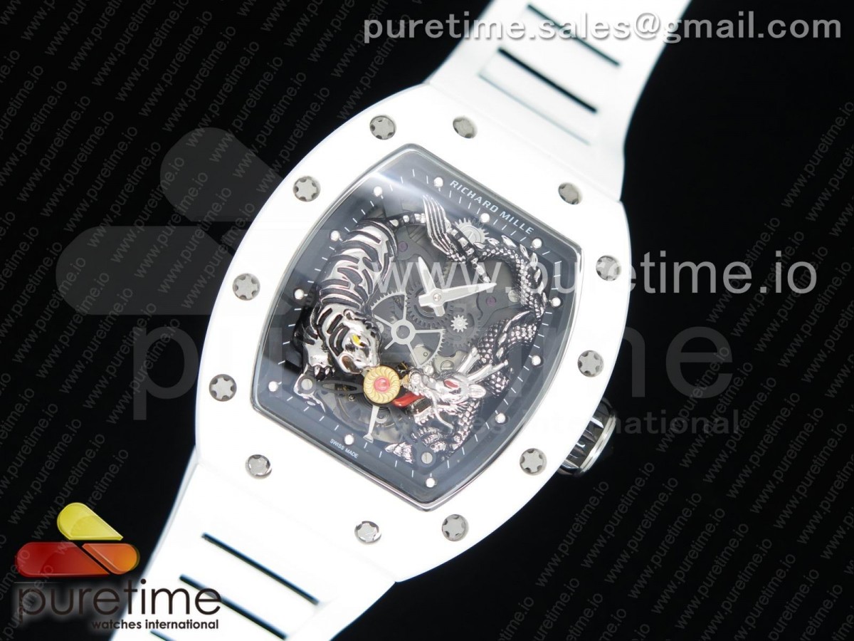 KVF 리차드밀 RM51-01 화이트세라믹 드래곤/타이거 스켈레톤다이얼 화이트러버스트랩 RM 51-01 White Ceramic Tiger & Dragon KVF Best Edition on White Rubber Strap MIYOTA8215