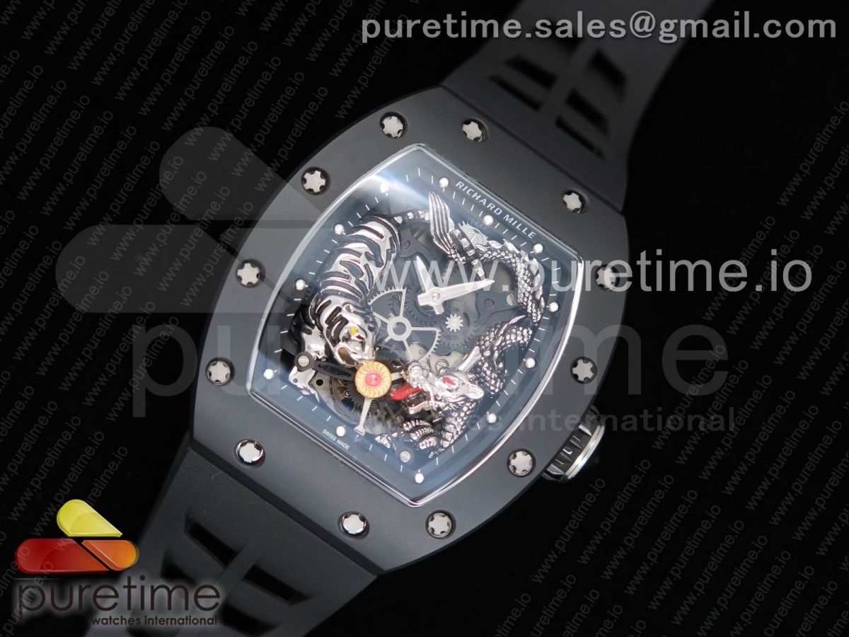 KVF 리차드밀 RM51-01 블랙세라믹 드래곤/타이거 스켈레톤다이얼 블랙러버스트랩 RM 51-01 Black Ceramic Tiger & Dragon KVF Best Edition on Black Rubber Strap MIYOTA8215 > 리차드밀(RICHARD MILLE)